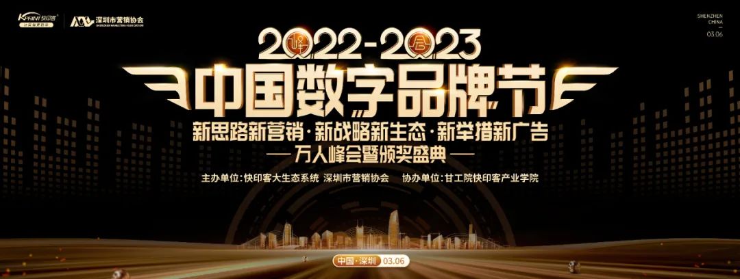3月6日,由深圳市快印客电子商务有限公司、快印客大生态系统、深圳市营销协会主办的2022至2023中国首届数字品牌节暨万人峰会颁奖盛典在深圳圆满落幕。作为中国广告快印行业万众期待的顶级盛会,此次峰会以“新思路新营销、新战略新生态、新举措新广告”为主题,开创行业数字赋能的先河,聚焦技术营销思维和数字技术变革新趋势。全国近万名广告快印营销界精英嘉宾借助线上线下联动方式,齐聚一堂,共筑广告新生态。